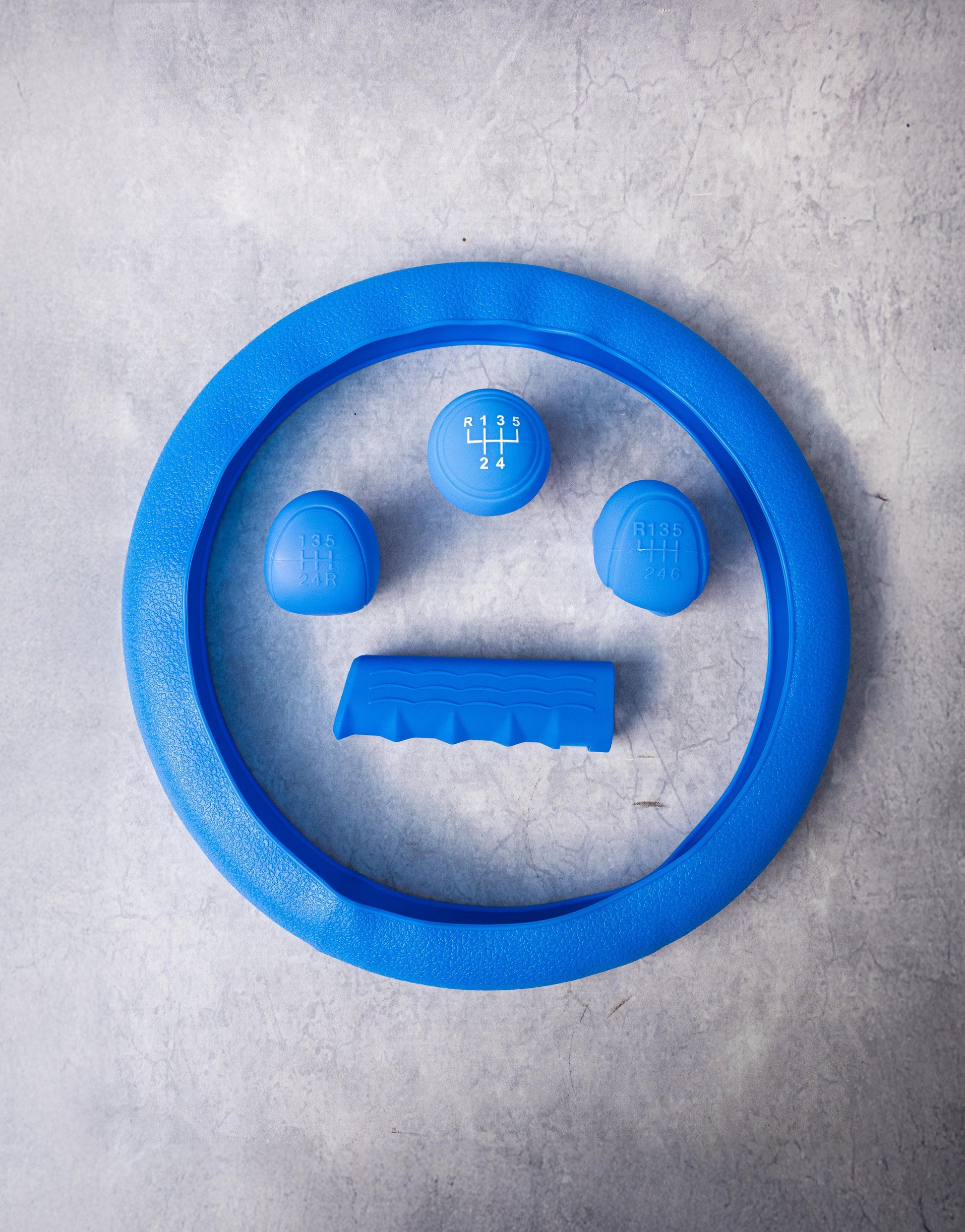 Renueva el interior de tu auto con estilo y comodidad. Este set incluye funda para volante, funda de freno de mano y 1 pomo de cambios en color azul, brindando un look moderno, protección y mejor agarre en cada manejo.