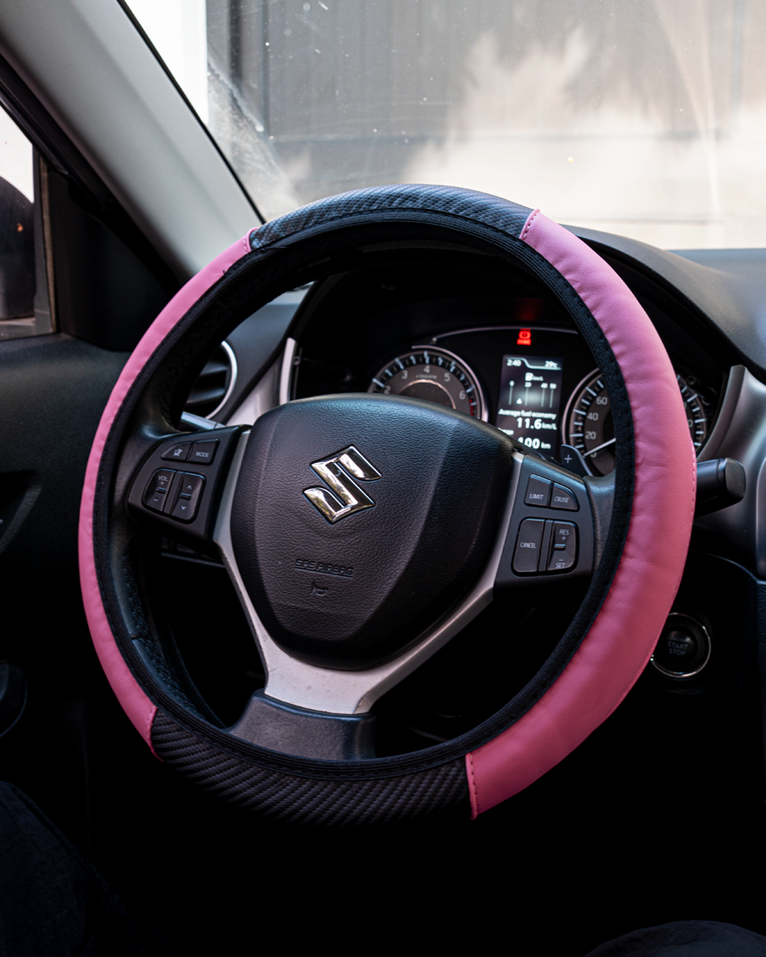 Protector elástico para volante de coche con rosa, sin anillo interior, se adapta a volantes 38cm, transpirable, fácil de llevar