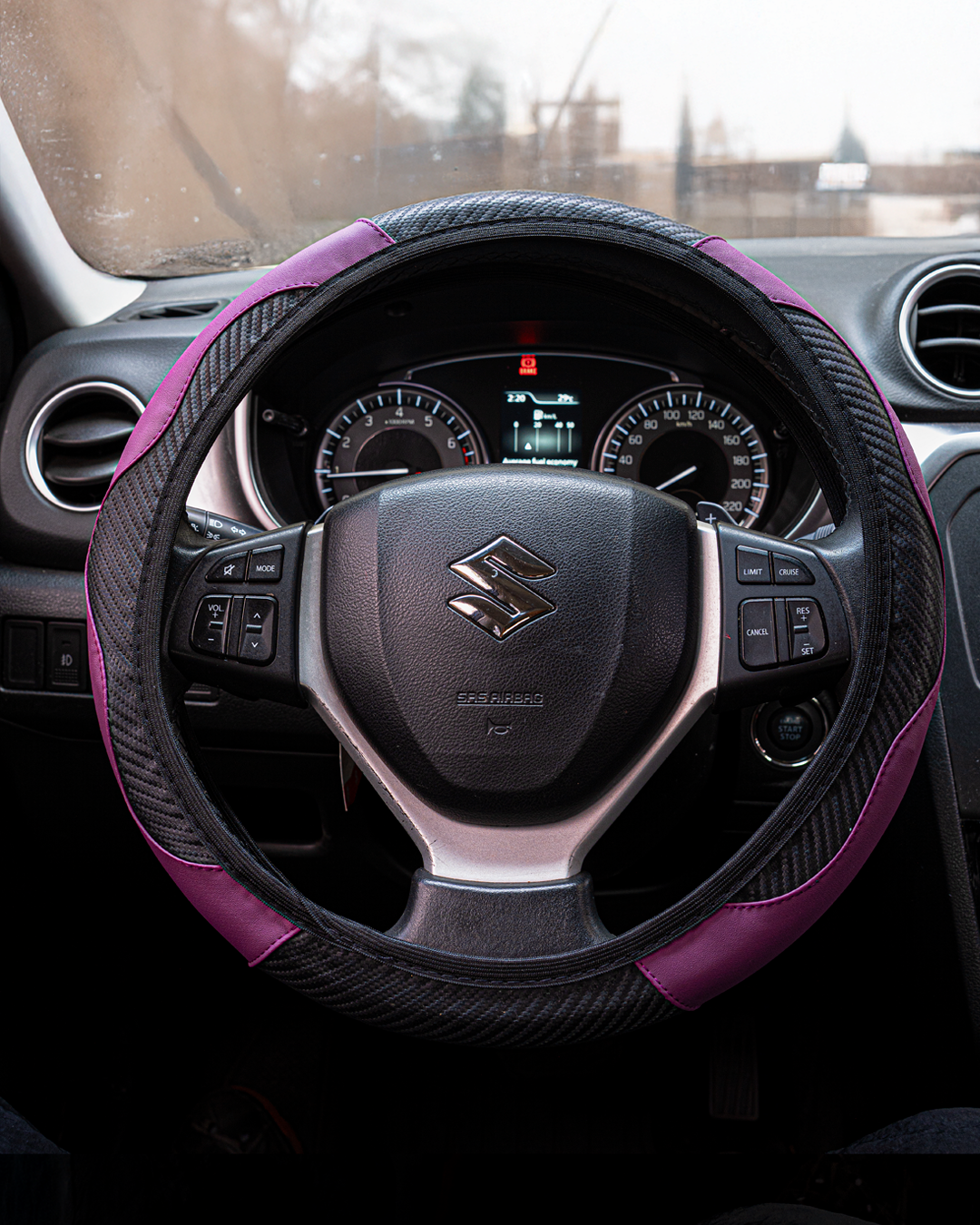 Protector para volante de coche, transpirable, antideslizante, de cuero PU, adecuado para decoración de coche de 38cm, fibra de carbono